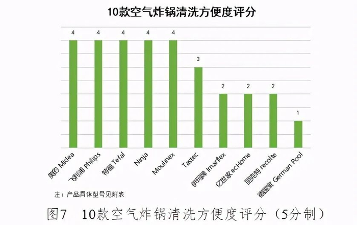 清洗方便度评分规则:评价好的样品应是可清洗的部件是可拆卸的,且易于拆卸;可拆卸部件具有防水功能,可以在洗碗机中清洗;废弃油应方便倒出;样品外表面可以擦拭干净,不会留下指纹和油腻痕迹。