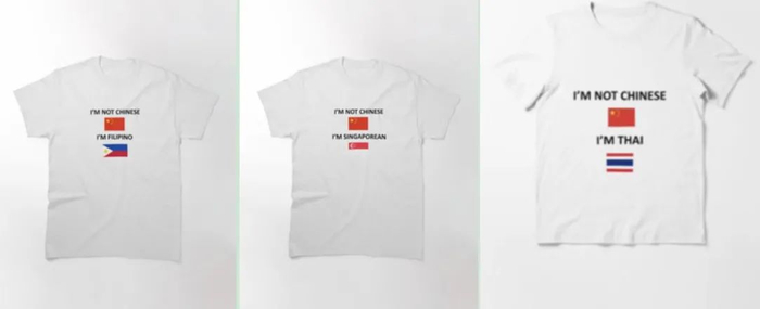 印有菲律宾、新加坡和泰国版本的“I am not Chinese”T恤。