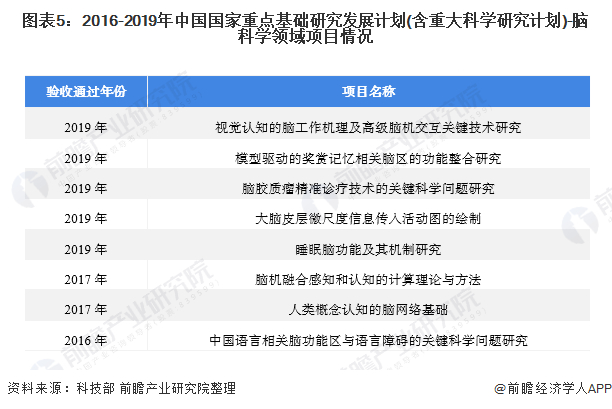 同时,据科技部发布的《国家重点基础研究发展计划(含重大科学研究计划)结题项目验收结果(2016-2019年)》,其中有关中国“脑计划”的项目也陆续验收通过。