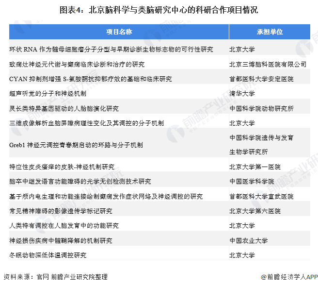 以北京脑科学与类脑研究中心为例,由北京市政府与中国科学院、北京大学、清华大学、北京师范大学、中国医学科学院、中国中医科学院等单位联合共建。根据该中心官网的信息显示,其科研合作项目的承担单位以高校院所和医院为主。