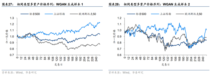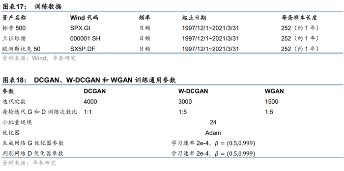 前期研究《人工智能35:WGAN应用于金融时间序列生成》(20200828)和《人工智能38:WGAN生成:从单资产到多资产》(20201124)已详细介绍WGAN的基本思想和实现细节,同时以Bootstrap重采样和GARCH模型等传统时间序列生成方法为对照组,充分验证了WGAN在生成单资产和多资产序列方面相对于传统方法的优势。