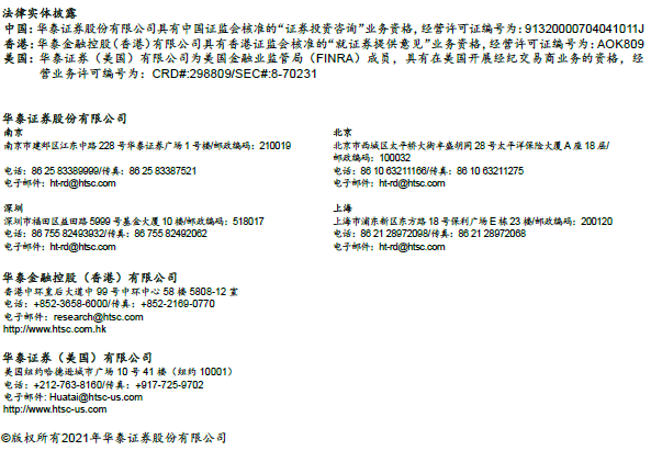 在任何情况下,本公众号中的信息或所表述的意见均不构成对客户私人投资建议。订阅人不应单独依靠本订阅号中的信息而取代自身独立的判断,应自主做出投资决策并自行承担投资风险。普通投资者若使用本资料,有可能会因缺乏解读服务而对内容产生理解上的歧义,进而造成投资损失。对依据或者使用本公众号内容所造成的一切后果,华泰证券及作者均不承担任何法律责任。