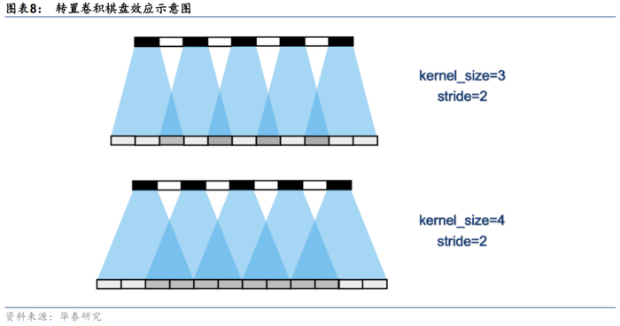 值得注意的是,作者使用全卷积网络的目的之一是希望可视化网络结构,观察中间层神经元输出结果,从而更好地理解训练过程。然而全卷积网络中的转置卷积操作可能会带来“棋盘效应”。Odena等人(2016)详细论证了转置卷积与“棋盘效应”,并给出了减轻“棋盘效应”的上采样方法:其一是确保转置卷积核大小可以被步长整除,即本文使用的方式,但作者同时表示此方法在实践中并不能完全消除“棋盘效应”;其二是使用最近邻插值或双线性插值法缩放图像再进行常规卷积,即GAN与前期研究中的WGAN使用的方式。因此,转置卷积层的使用可能带来效果下降的风险。