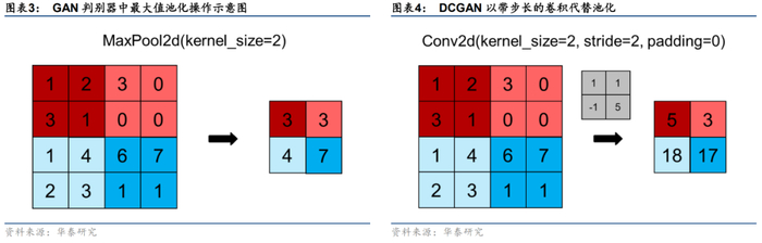 此前我们使用的GAN包含2*2的最大值池化层。然而,这种暴力降低特征图分辨率的方法可能丢失大量信息,一个2*2的最大池化操作就会丢失近3/4的信息。在算力足够的情况下,可使用带步长的卷积操作替代池化进行下采样。