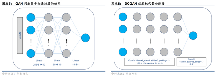 本文探讨GAN模型的一类重要变式——DCGAN在生成多资产金融时间序列中的应用。和WGAN针对损失函数改进的思路不同,DCGAN的核心思想是针对网络结构改进原始GAN。DCGAN使用更灵活的转置卷积层和带步长的卷积层,分别替代GAN模型中的上采样层和池化层。同时,DCGAN取消全连接层,并调整归一化层、激活函数、优化器等网络组件,使生成器和判别器均为全卷积网络结构。