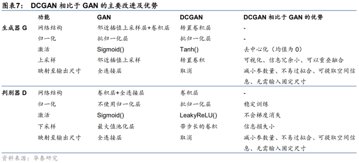 DCGAN模型对GAN模型的改进集中在网络结构部分,即将生成器G和判别器D设计成全卷积网络,由此带来的优点包括: