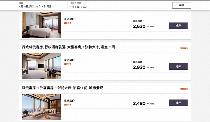 而高级房型的价格差异就更加悬殊。同样在这一晚,普通旅客入住尊贵套房的价格是3480元,而阿里巴巴的协议价格只要3001元,其中的差价近500元。这也不难解释为何闲鱼上提供代订服务的卖家大都只做行政套房或尊贵套房等顶级房型,其中产生的利润差价可见一斑。