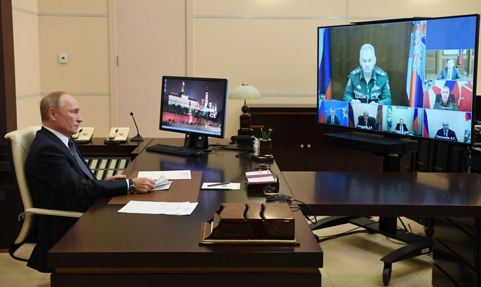 2020年11月20日,俄罗斯首都莫斯科,俄罗斯总统普京通过线上视频的方式出席会议讨论纳卡局势。普京表示,目前俄罗斯维和部队在纳卡地区有效执行人道主义维和任务,局势稳定。