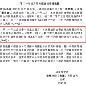 一季度销售暴增210%:负债持续改善的金辉控股 有多少水分?