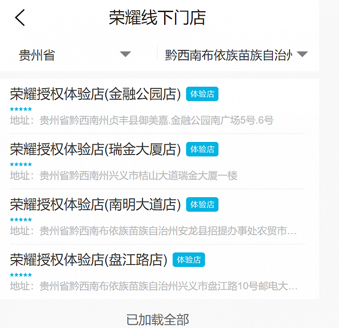 去年12月初,曾有媒体报道,四川成都万象城荣耀授权店即将开业。这家门店目前也可以从华为商城中查询到。因此,即便此后各地新开设的线下门店未更新,但数据相差相信不会出入太大。