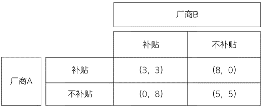 当讲究先发制人的网约车厂商都选择最大规模争取用户、击垮对手时,“补贴大战”式的内卷也就此出现了,最终的结果是两家厂商都对用户进行补贴,从而导致两者的收入都从5减到了3。