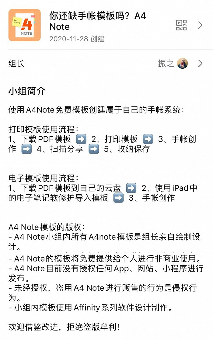 手帐爱好者可以根据自己的需求从小组里找到想要的模板,自行打印出来。在一条帖子下面,组长「振之」还贴心地强调:「打印模板考虑到打印成本的问题,所以一直遵循着简洁的设计思路。打印模板应该还是坚持这个路线。电子手帐模板会考虑加入一些可爱的色彩元素。」