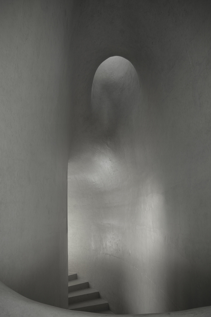 据MAD团队介绍,此次他们采取“反材料”的方式,避免有意表现结构、构造,从而消解材料本身固有的文化意义,让空间感受本身成为主体。建筑室内外运用混凝土整体浇筑一次成型,极好地展现了该材料流动、柔软多变的结构形态和特点。