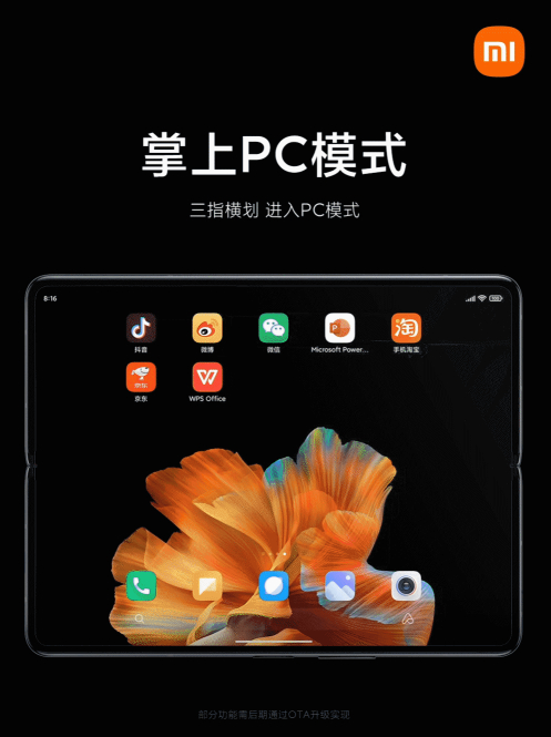 同时,小米折叠屏MIX FOLD内置沉浸感的掌上PC模式,开启后可对文件、图片、文件夹、APP自由放置于桌面,位置随心调整。