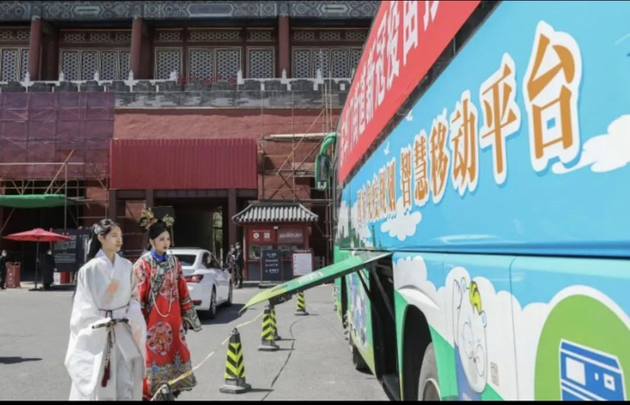 移动疫苗接种车在故宫博物院东华门外投入使用
