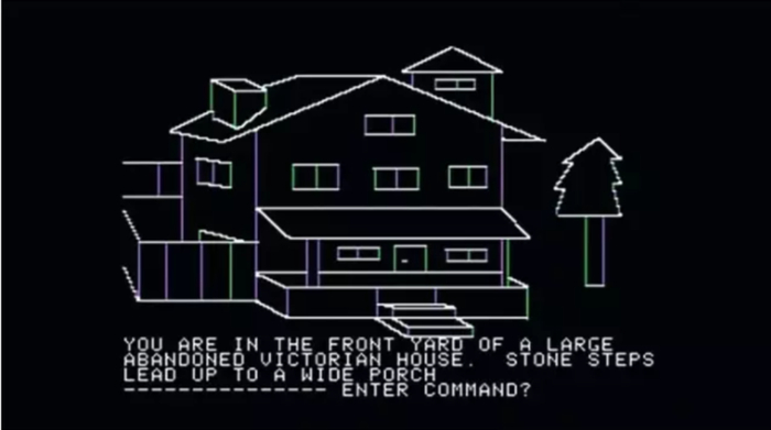 他首先梳理出游戏中最早的树的形象——一个出现在《神秘屋》(Mystery House, 1980)中,用锯齿状线条画出的巨型红杉;