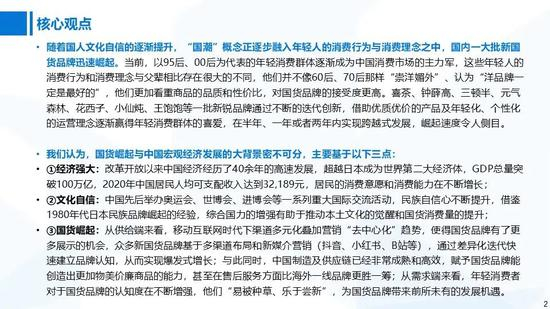 我们认为,国货崛起与中国宏观经济发展的大背景密不可分,主要基于以下三点:
