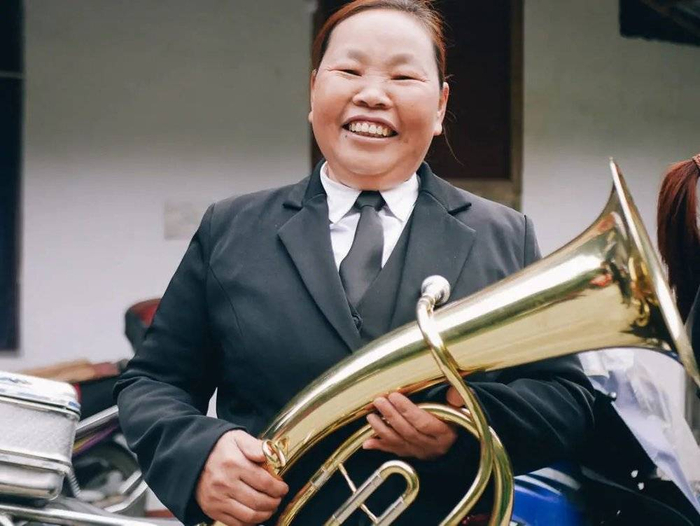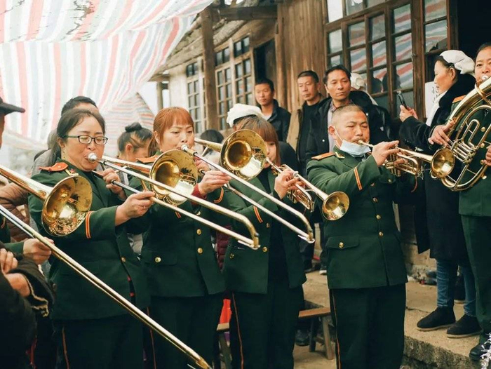 林冬是我的姨孃,她和林贵菊,我妈林志秀都来自同一个地方,一个比我们村更穷的山上。那里的女人喜欢嫁到我们这里,“这里”被她们称为“平原”,代表着富裕。林冬说自己嫁的地方没有嫁太好,在一个坡上,她与自己的男人在那里种烟,从早到晚,还要带两个孩子。后来他们买下了我们村里的一块地,修了一栋石房子。她吹奏的是长号,花了800元,在网上买的。乐器的成本大多都控制在3000元以下,也有一个女人买了一把8000元的中号。大家对此不以为然,“葬礼上要的是一种气氛,不是你演奏得有多么好听。”
