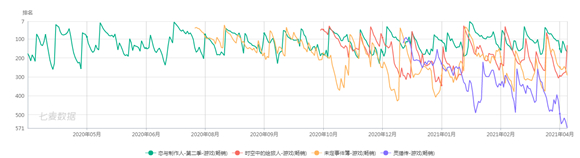 根据七麦数据,《恋与制作人》在App Store畅销榜上一直保持着稳定领先的位置,而其他三款大厂出品的女性向恋爱手游波动较大,甚至出现滑坡。
