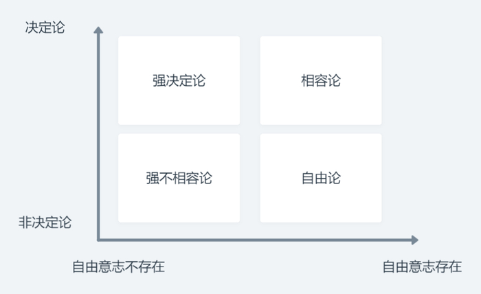 因此,在现代哲学中,关于自由意志的立场,一般存在四种: