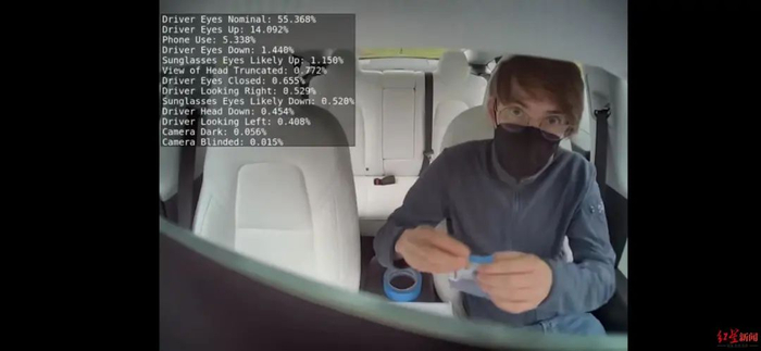 特斯拉车内监控画面图据微博