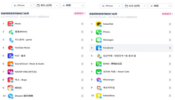 韩国各类别移动 App 热门排行榜上少有海外产品身影 | 来源:App Annie