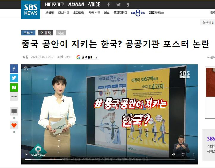这一图片迅速在韩国起了风波。有韩国媒体直接在标题中反问“中国公安守护的韩国?”“我们儿童的安全由中国公安守护?”“中国公安成韩国民众拐杖(编者注:一种比喻用法相当于人民的守护神)?”↓