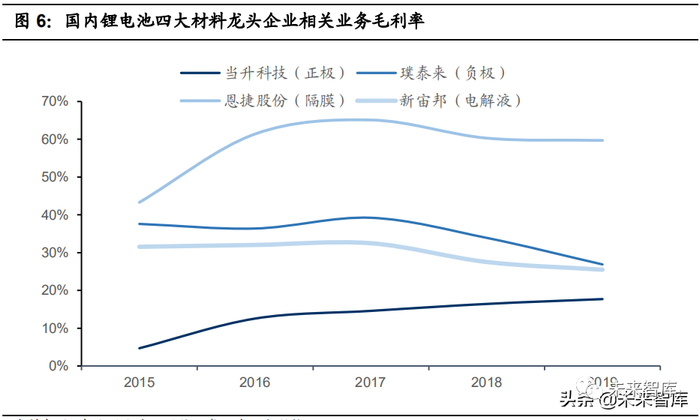 对比锂电池四大材料,正极材料价值占比高、国内市场分散、盈利能力较弱。