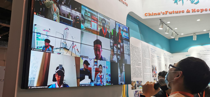 根据疫情防控要求,今年以线上线下相结合的方式进行展示。除了部分同学在现场展示发明成果之外,在官网上还特设上海市青少年科技发明成果展区进行线上展示。此外,更多同学还通过视频连线的方式参与展会。