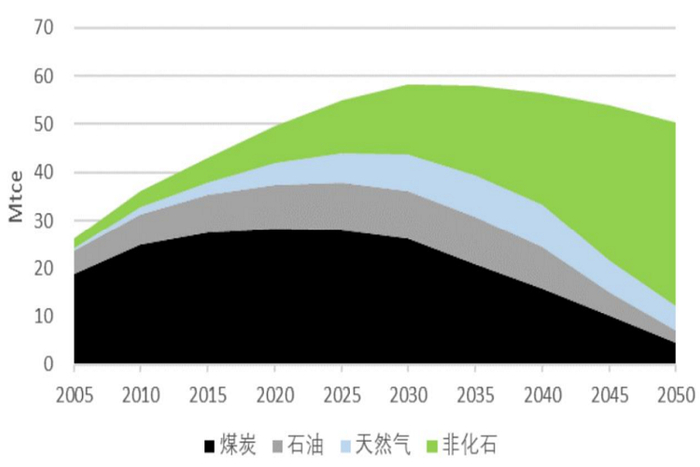 图表2:2℃情景下2030年一次能源消费将进入峰值平台期