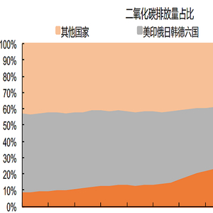 从绝对规模看,我国碳排放长期占据全球总排放量的近三成。根据英国石油公司(BP)的统计,2005年我国超越美国,成为全球第一大二氧化碳排放国。2011年至今,全球碳排放基本是“三足鼎立”的格局:我国碳排放占比29%左右,美国、印度、俄罗斯、日本、韩国和德国六国的碳排放占比33%左右,其他国家合计占比38%左右。
