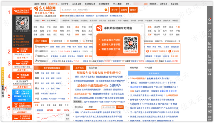 (3月10日东方财富网页广告一览,按图中左侧数字排序分别为: