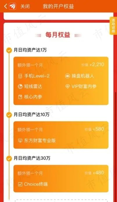 对于现存的证券客户,东方财富会向月日均资产达30万的用户每月赠送Choice终端使用权限。