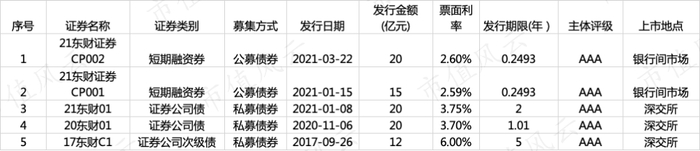 除了通过母公司发行可转债融资外,东方财富证券还以发行债券、短期融资券的形式来补足营运资金,2020年11月至今共计发债75亿元,融资成本介于2.59%-3.75%。