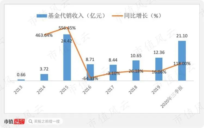 通过以量补价,天天基金收入从2016年的8.71亿元上升至2020年前三季度的21.10亿元,接近2015年24.42亿元营收的峰值。