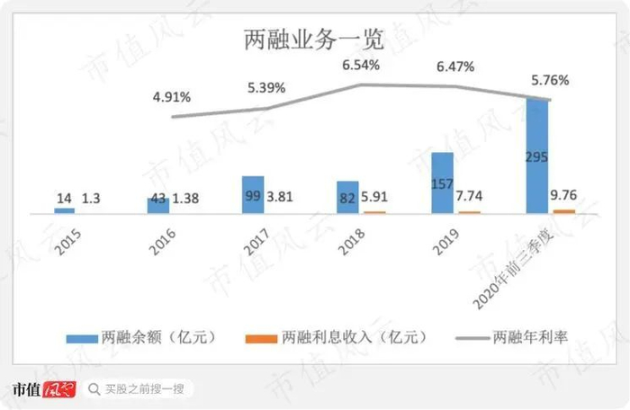 此外,2020年前三季度5.76%的两融年利率较2019年的6.47%有所下降,这是由两融资金随可转债发行而快速增加、但利息收入存在滞后所导致的。