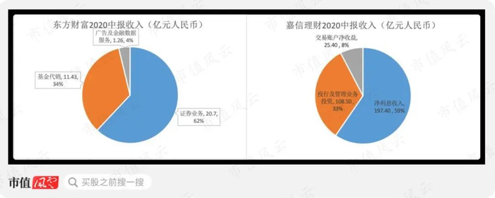 简单说,2020年中报显示,银行净利息和投行及管理业务投资分别占比嘉信理财收入的59%、33%,与东方财富依靠证券、基金交易佣金存在明显不同。