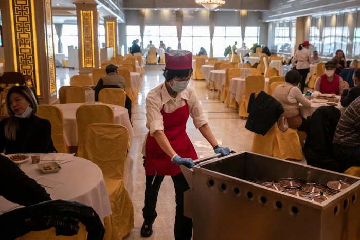 这家餐厅首次开始提供外卖,目前外卖业务占总业务量的三分之一。而户外用餐从来没吸引到很多人,部分原因是海悦大酒楼是以举办大型宴会而闻名的,而这类活动已被禁好多个月了。