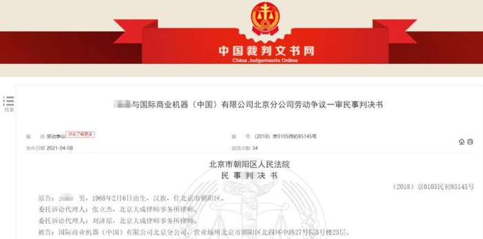 在一审判决中,法院支持了IBM一方,即认定其是合法解除劳动合同。