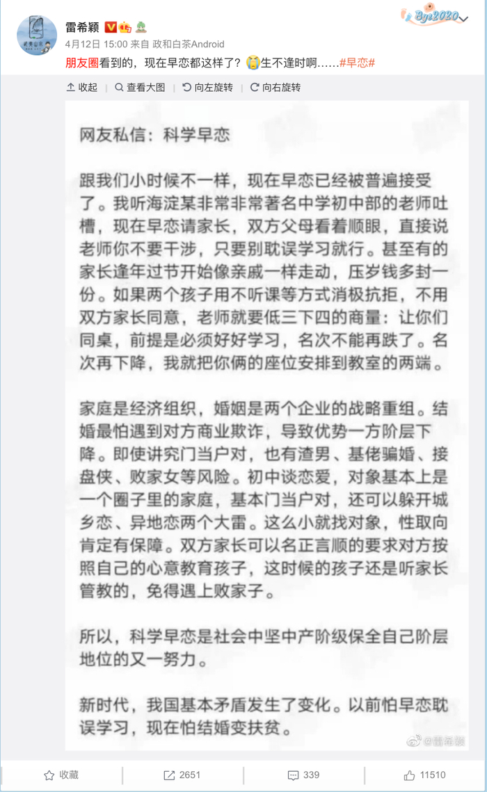 这恐怕不能归咎于当前缺乏模板供创作者书写。2014~2015年是青春校园片井喷的年份,那时候主流是拍学生时代的爱情,早恋,经典的形态是两个性知识、自我认知都不成熟的男女在情感驱使下发生性关系,最终受现实阻碍感情破裂,讲的是相对单纯的校园环境下的恋爱关系。可是在最早一批00后都已经成年的2021年,早恋这个模板早就被更新了,当下的校园爱情重点在阶级匹配和提前成年,在一二线城市里,现实(同个城市、经济/家庭条件)反而是促使学生情侣走到一起的因素,而借助互联网提前成年的学生们,遵循的也不再是单一感情模式,至少,使用社交软件拓展了他们在情感关系上的体验。