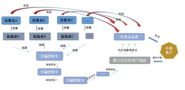 这种义乌特色的第三方打款方式,也非常容易被不法分子利用。赵先生给记者分析,地下钱庄为了尽快出手大量廉价赃款,会以极低的价格将赃款兑换给外商客户用于付款,导致赃款流入中国外贸商人的账户,而犯罪分子则在境外成功套现美元——出口了商品,商户账户被冻结,外汇却流入诈骗集团和黄牛的手里。