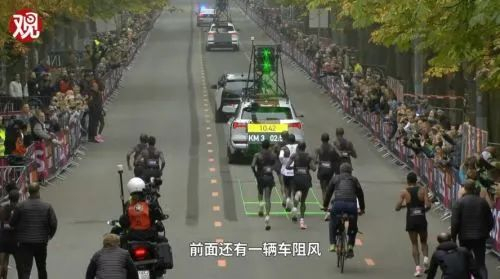 后面还有2个人充当“尾翼”,基普乔格就像坐在一辆车里在跑。