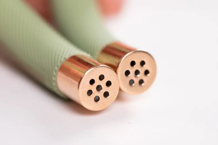 再结合两端金属头上精密计算过的14个小孔,让精油的挥发更加缓慢,手环驱蚊时间更加长久。