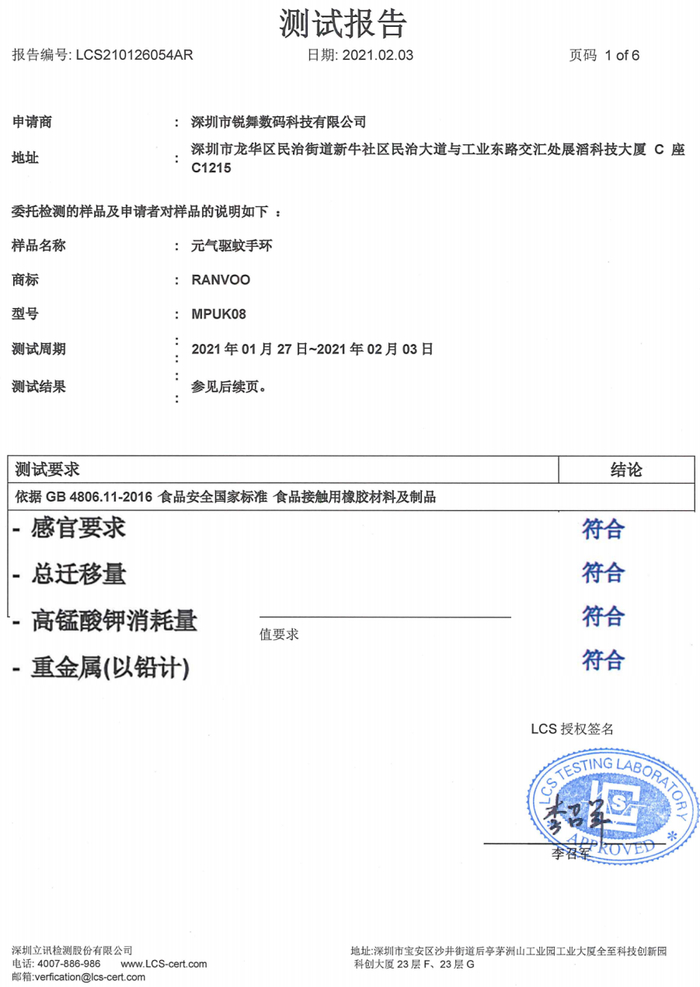 锐舞元气驱蚊手环采用的是婴儿奶嘴级的食品级硅胶,还通过了皮肤致敏测试。