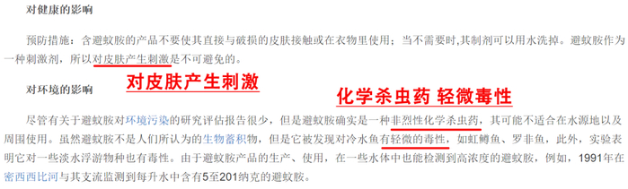 现有的驱蚊产品成分主要是驱蚊胺,但其实驱蚊胺是一种杀虫剂,它不仅会伤害皮肤,还含有微量的毒性*。