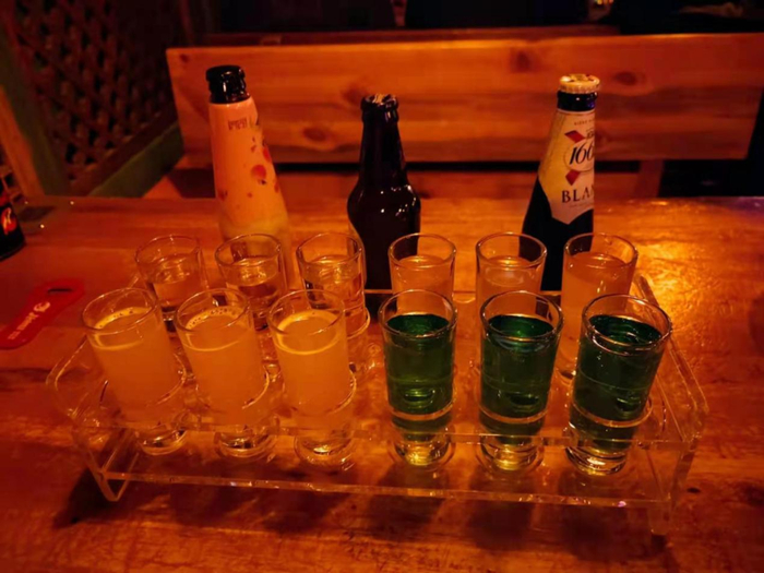 酒馆内,不时传来骰子摇动的声音,是年轻人正在用骰子做游戏。每张海伦司的桌子上都摆有骰子,顾客玩着真心话大冒险等游戏,其中有玩输的人做俯卧撑、找不认识的顾客社交……