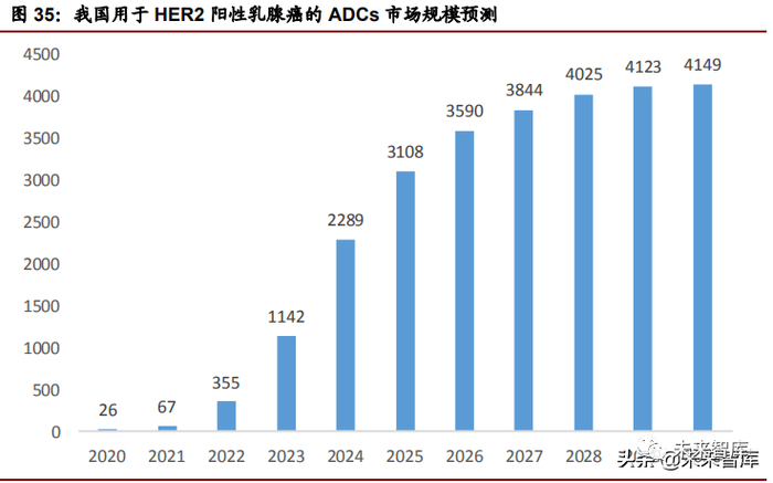 据弗若斯特沙利文分析,预计 2020 年我国用于 HER2 阳性乳腺癌的 ADCs 市场 规模为 260 万美元,2020-2024 年的复合年增长率为 207.4%,预计 2030 年将 达到 4149 万美元。