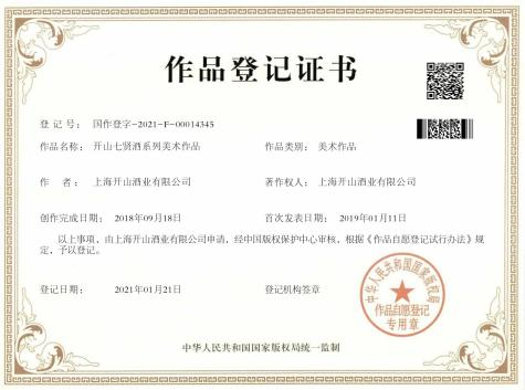 开山酒业方面表示,开山七贤系列美术作品已取得作品登记证书,获《著作权》法保护,而其酒瓶设计则已取得外观设计专利,获《专利法》保护,并具有极高的商品识别功能。