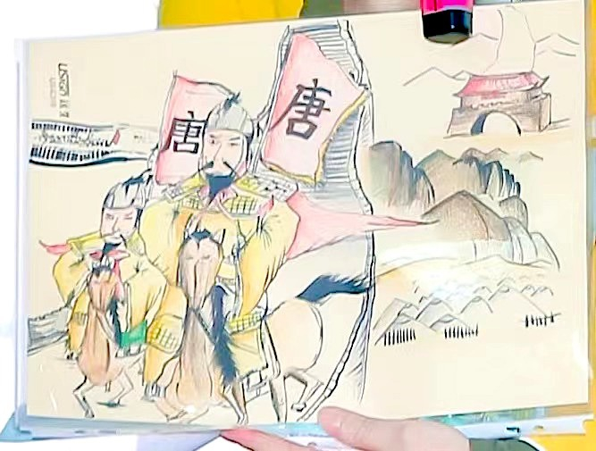 演讲现场,黄嘉晨还带来两幅他根据古诗词所作的绘画。一张画的是边塞诗,有嘉宾猜测画的是王昌龄《出塞》中的“秦时明月汉时关”,也有人猜是王维《送元二使安西》中的“西出阳关无故人”。