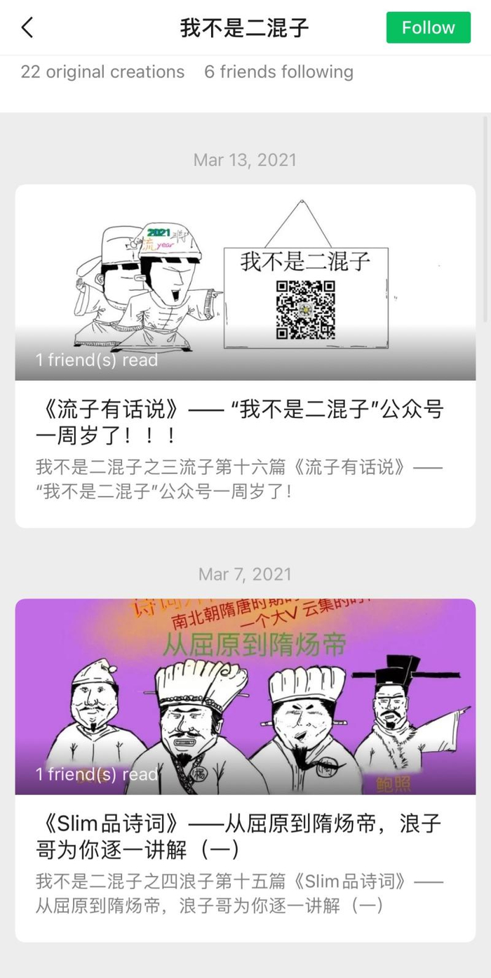 黄嘉晨和小伙伴开的微信公众号“我不是二混子”